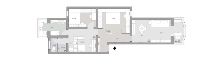 3.两代东谈主生涯需要保留两间卧室,互不惊扰幸免生涯风俗上的不适。原客厅空间不大采光窗也比拟小,需要进行鬈曲重新散播。