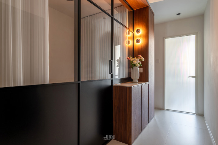 1.愚弄玻璃砖加多玄关通透性,并普及采光兑现。弧形计划可以优化动线,让合座过渡愈加当然。