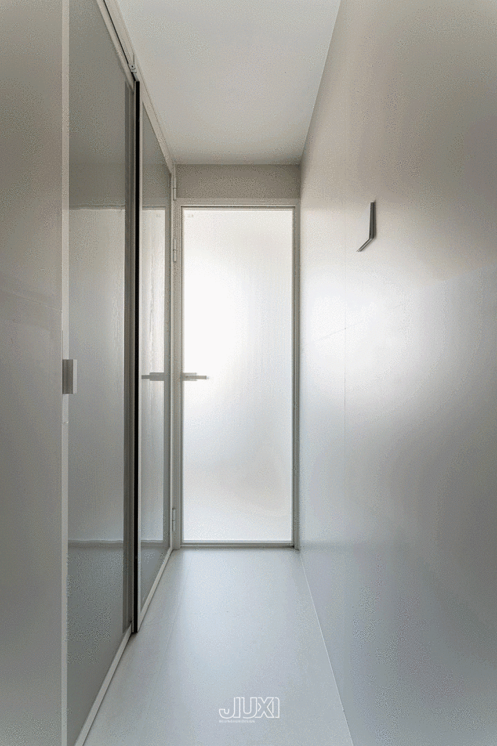 中间木格绽放,挂外衣同期还袒护电箱, 白柜门关紧藏雨伞和外衣 ,回家装备三步收干净。