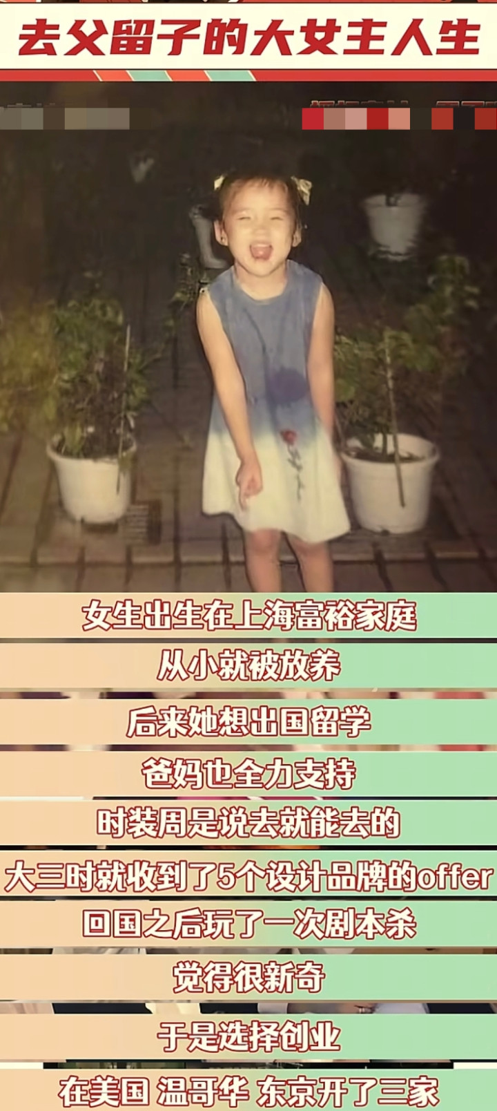 与之酿成昭着对比的,是那些主动接收、并活得申明鹊起的“去父留子”者。网上一位上海女生的经验,就是典型。